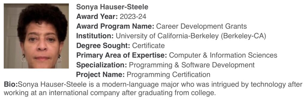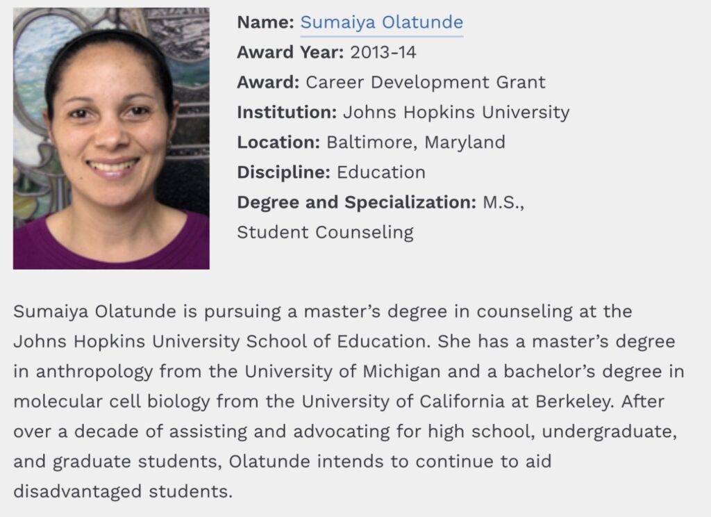 The fellow for Award Year 2024-25 requested their details not be shared publicly. She is pursuing a degree in the Education field in Florida.